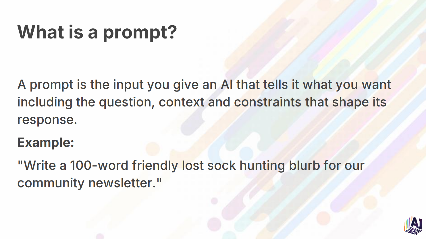 Prompt = what you tell AI to do.